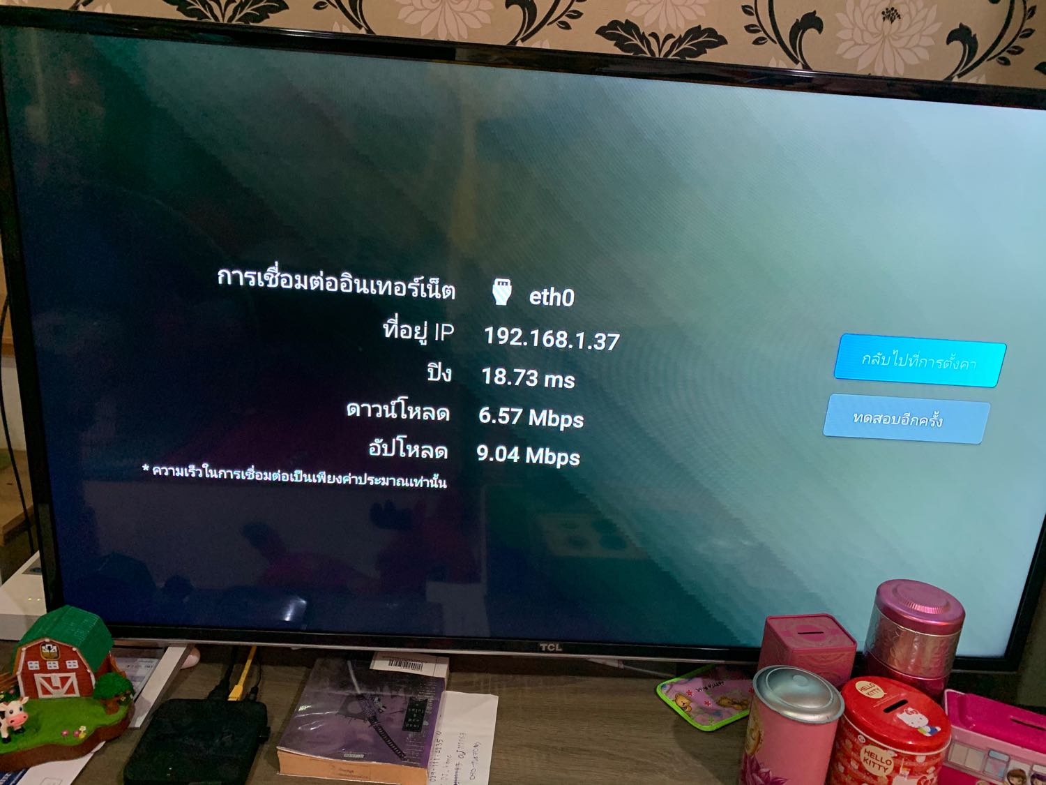 - ตอนที่พิมพ์อยู่ ขึ้นว่ารับสัญญาณไม่ได้ cooo2 วัดความเร็ว wifi ได้อยู่ไม่ถึง 100M ส่วนสัญญาณผ่านสาย LAN เข้ากล่องอยู่ที่ 6-9M