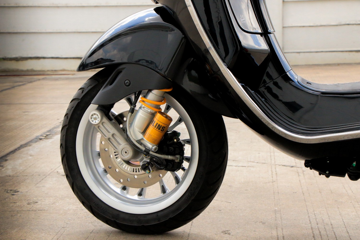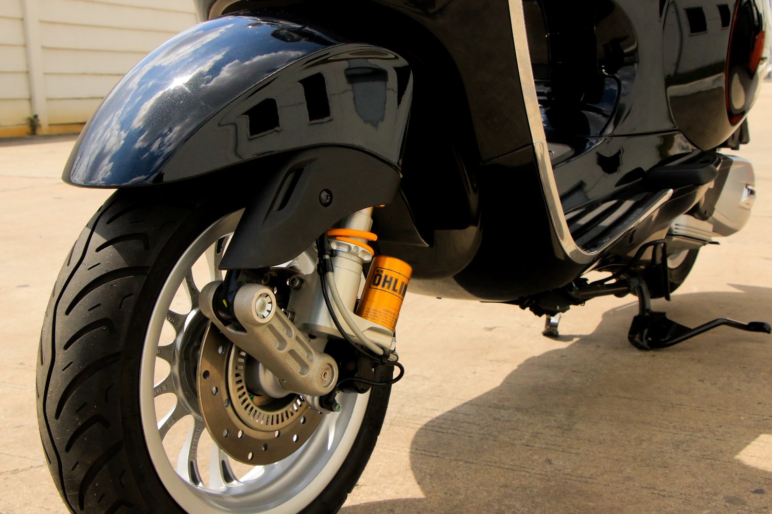 Öhlins พร้อมให้คุณขับขี่ Vespa Sprint 150 ABS ไปได้ทุกที่ โดดเด่นเต็มสไตล์ ด้วยสมรรถนะการขับขี่ที่เร้าใจกว่าเคย! เพราะโช้คหน้าและหลังจาก Öhlins จะช่วยให้คุณควบคุมการขับขี่ได้ดั่งใจ สัมผัสได้ถึงความนุ่มนวลในทุกจังหวะ พร้อมให้คุณสนุกแบบมีสไตล์อย่างเต็มประสิทธิภาพ!
