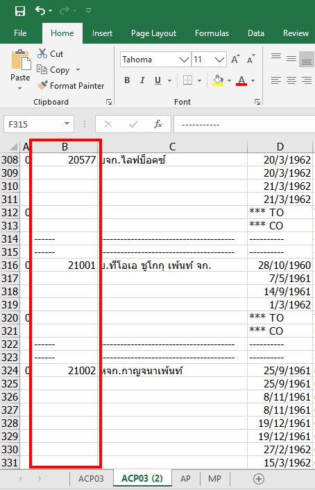 พอมีวิธีที่ใช้ลาก Column B โดยที่ไม่ต้องกดที่ละตัวไหมครับ