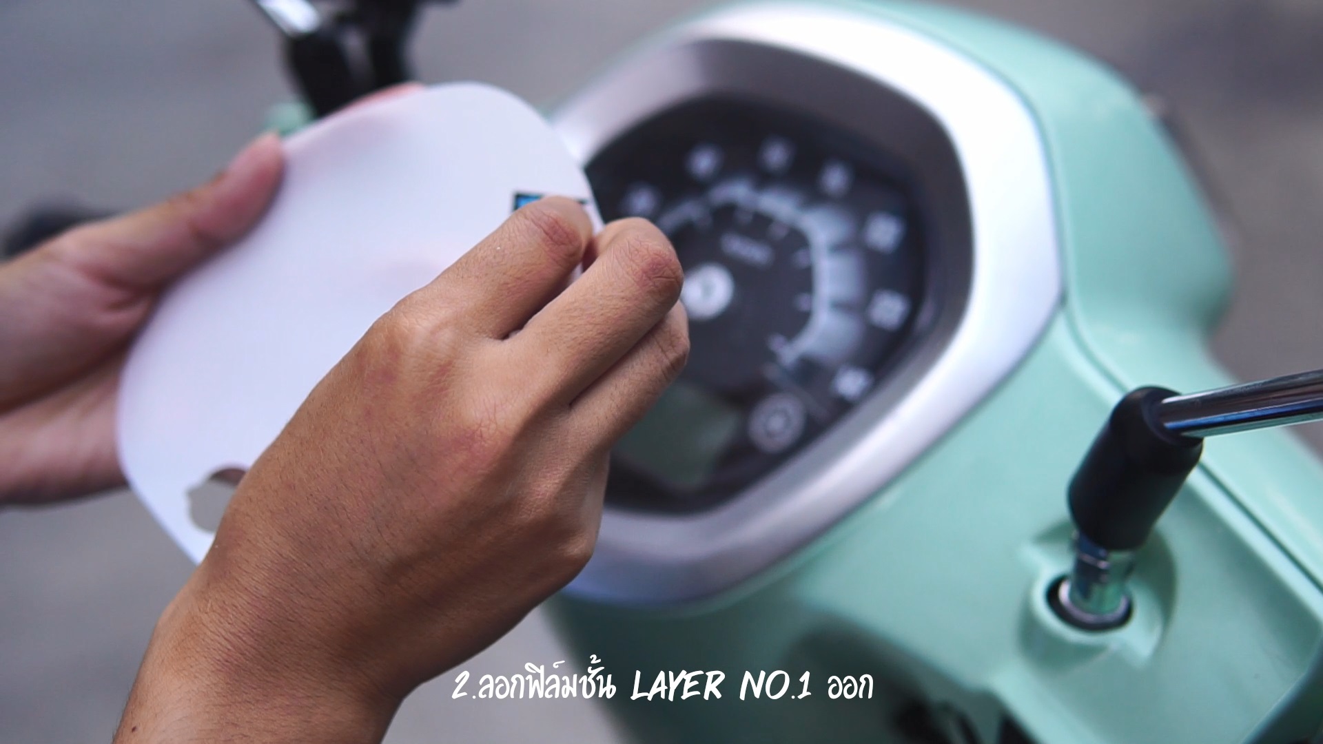 6.ลอกฟิล์มชั้นบนสุด layer on.2 ออก เพียงเท่านี้หน้าปัดเรือนไมล์ไบค์เกอร์ของนะก็ได้รับการปกป้องแล้วค่ะ