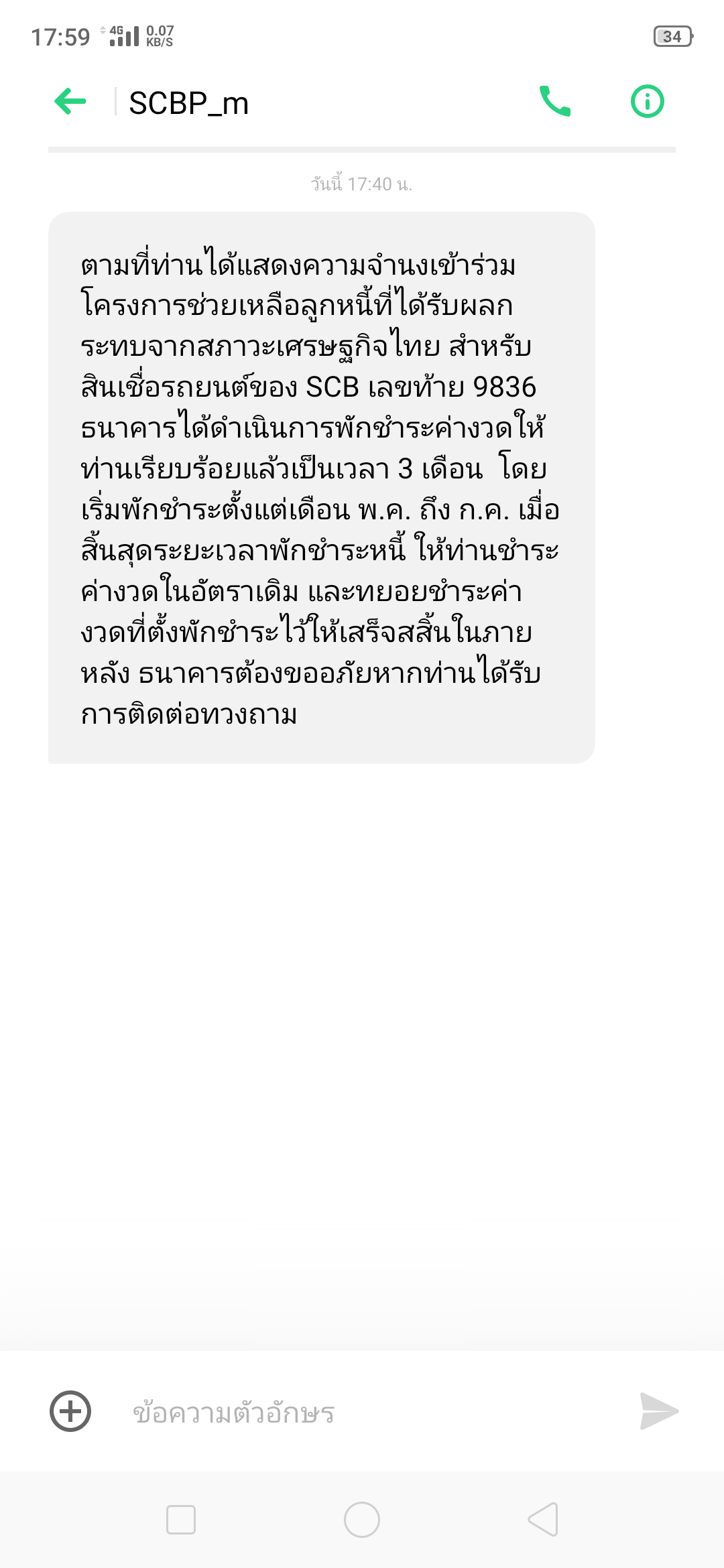 ทางธนาคารส่งมาแบบนี้ แสดงว่าอนุมัติการพักหนี้แลัวใช่ไหมครับ แล้วทำไมใน แอปพลิเคชัน scb easy ในบัญชีสินเชื่อรถยนต์ยังให้จ่ายค่างวด เดือนพฤษภาคมตามเดิมละครับ
