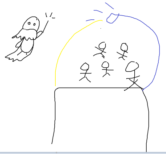 ฉากนี้คือมันจะมีฝ่ายตัวดีและตัวร้ายสู้กันบนสิ่งก่อสร้างอะไรสักอย่าง แล้วกางบาเรียไว้