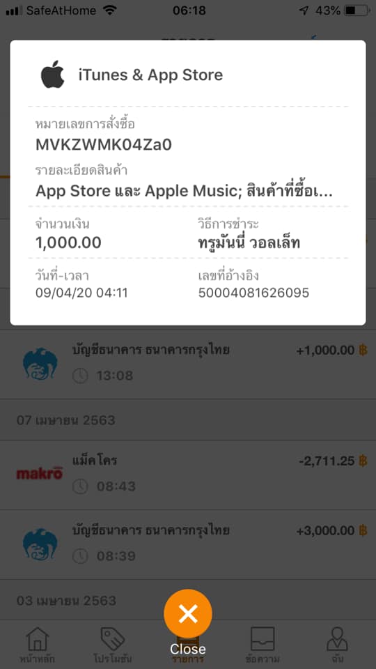 TrueMoney โดนหักโดย AppleID โดยไม่มีรายการ