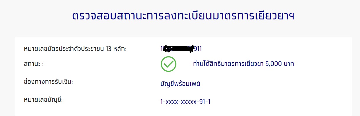 ก่อนหน้านี้ระบบขึ้นสถานะ " ท่านได้รับสิทธิ์แต่เนื่องจากชื่อบัญชีไม่ตรงกับข้อมูลลงทะเบียน " ก็เลยคิดว่าอาจจะพิมเลขบัญชีตกไป เลยเข้าไปแก้ไขโดยพิมเทียบกับสมุดบัญชีอีกรอบนึง ซึ่งครั้งนี้ผมมั่นใจ