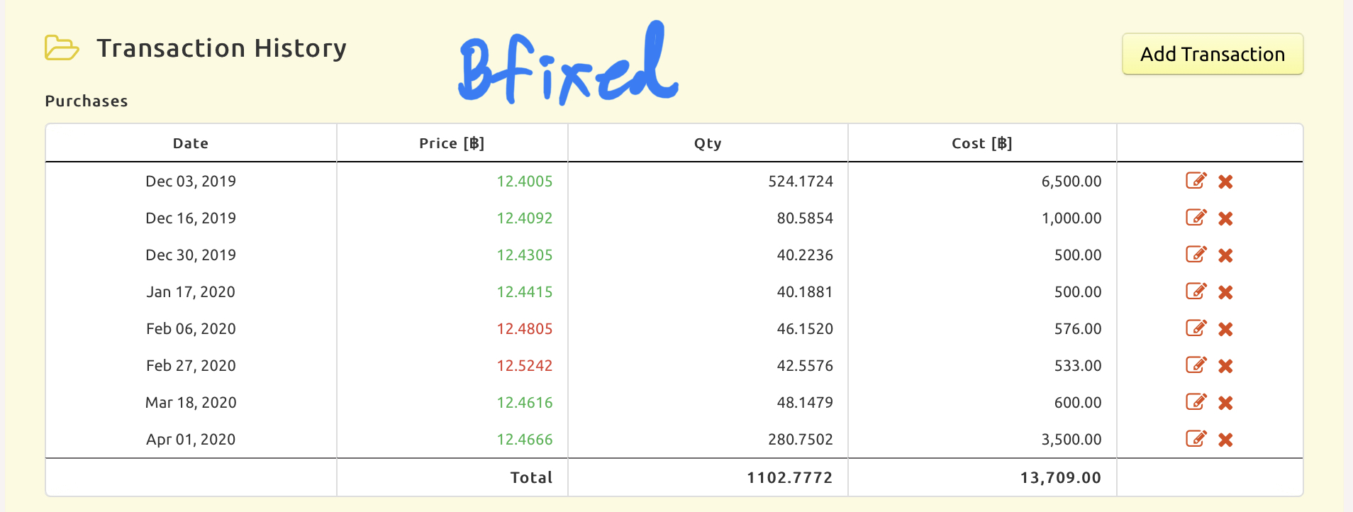 มีการเข้าซื้อ 8 ครั้ง แล้วแต่ว่าจะมีเงินช่วงไหน แต่ยอดสุทธิตอนนี้จะไม่ใช่ 13,709บาท ตามภาพ