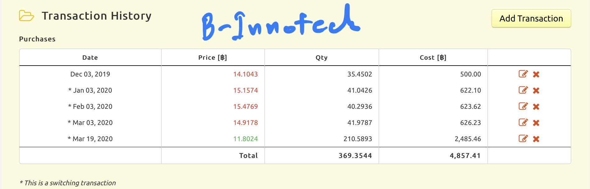 ซื้อเข้าซื้อจนถึงปัจจุบัน 4 ครั้ง และยังไม่มีการขายออก รวมเป็นเงิน 5,500บาท ตามภาพ