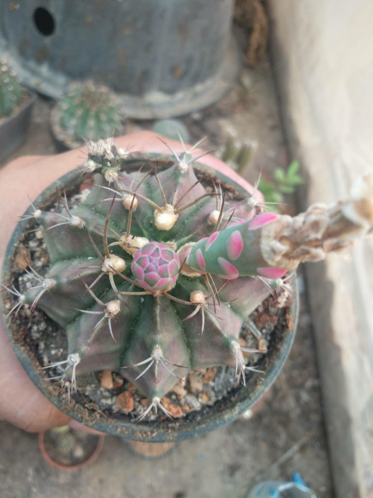 สอบถามคนเลี้ยงกระบองเพชรยิมโนหน่อยค่ะ กระบองเพชรเราตอนที่ได้รับมาตอนแรกสีเป็นแบบนี้ค่ะ ต้นเขียวสีเขียวก็เขียวสดใสมากค่ะ (มีม่วงแซมๆที่โคนหน่อย) แต่พอเราเอามาเลี้ยงได้ 2สัปดาห์น้องสีเขียวต้นเดิมเป
