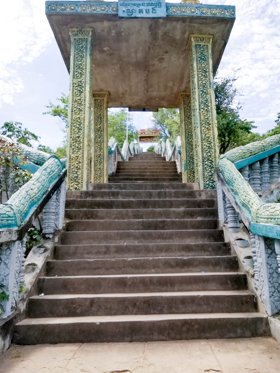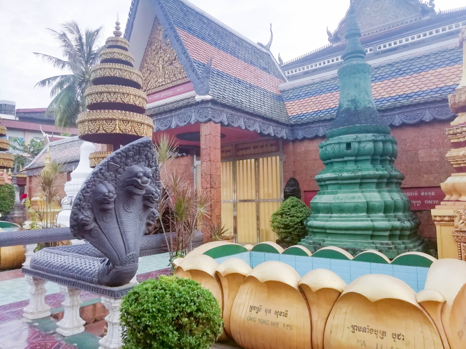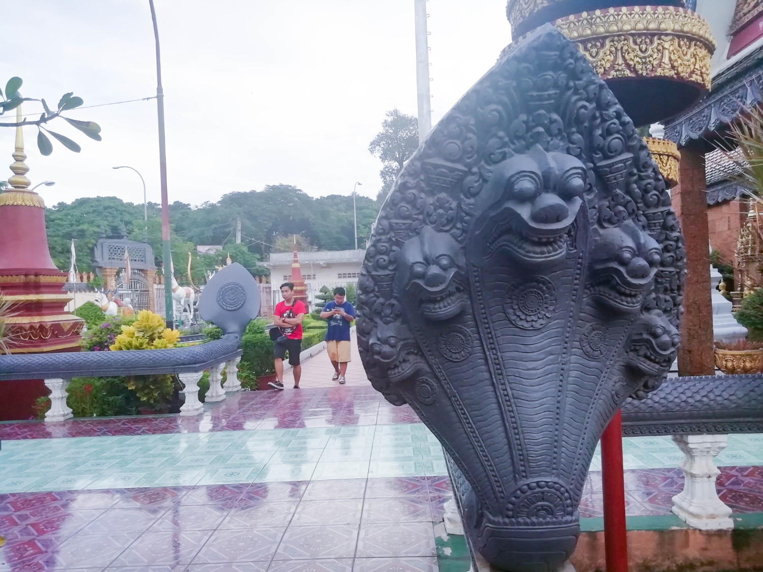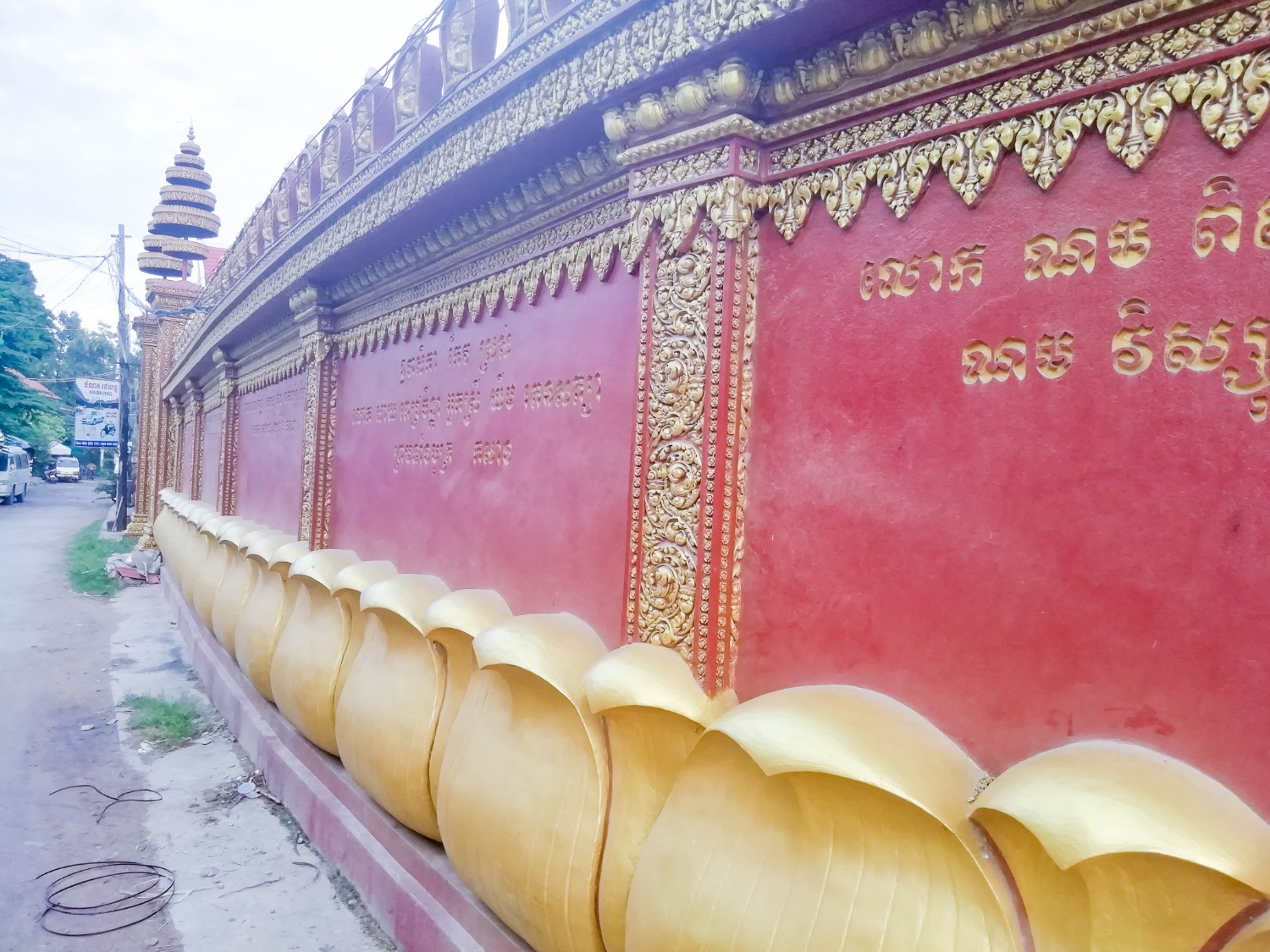 เราก็เลยเดินไปเรื่อย ๆ ก็มาเจอกับวัด ๆ หนึ่ง อ่านชื่อไม่ออก แต่ปะติมากรรมคล้ายนครวัดมาก