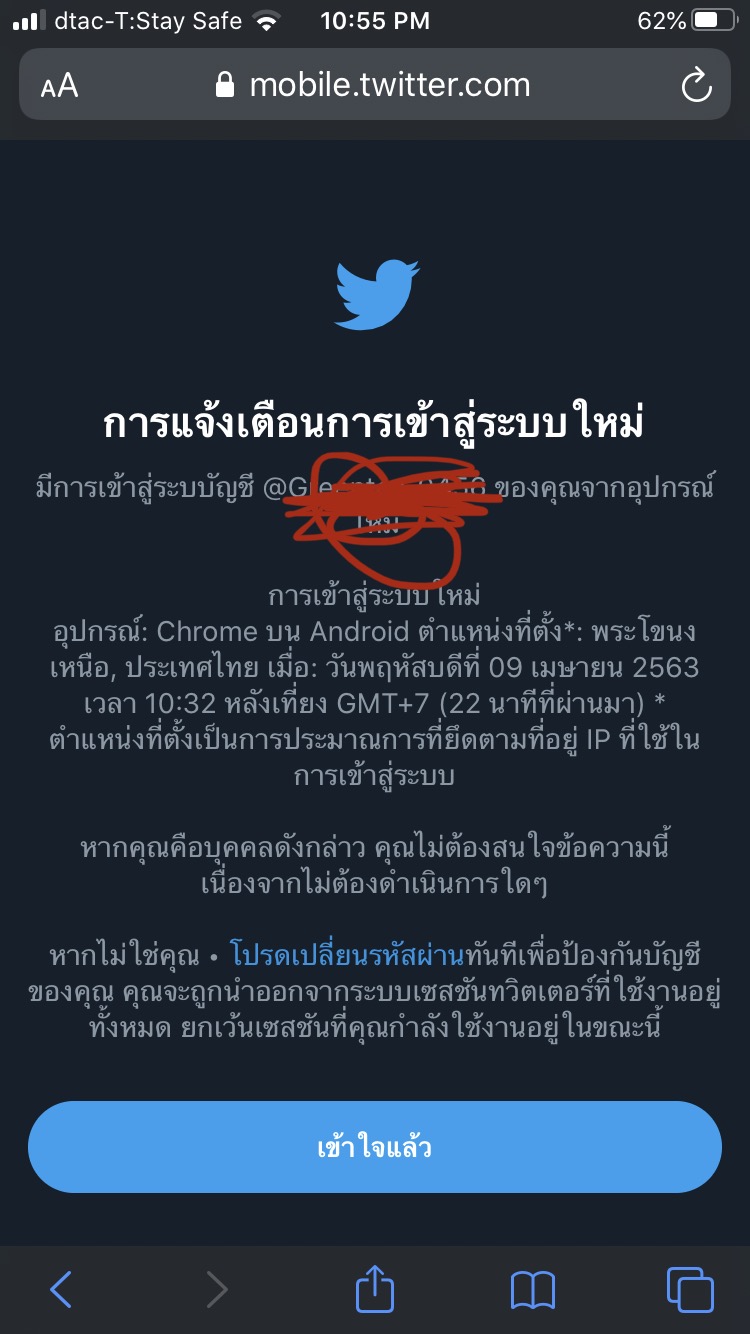 เนื่องจากมีการแจ้งเตือนตามรูปอยกรู้ว่าเราโดนแฮคหรือเปล่าเพราะมันขึ้นแบบนี้และเราก็ไม่ได้อยู่กทม. ด้วย