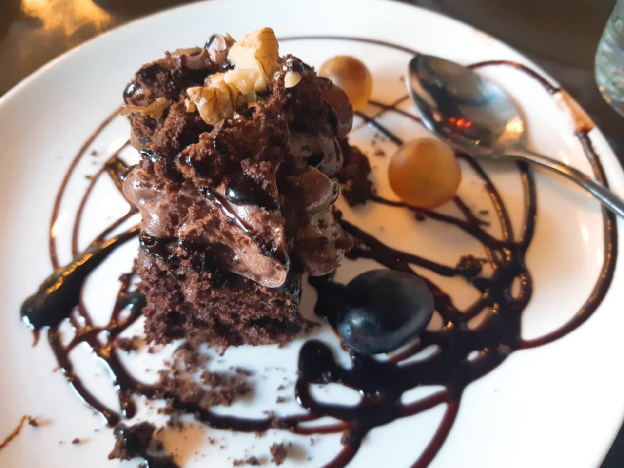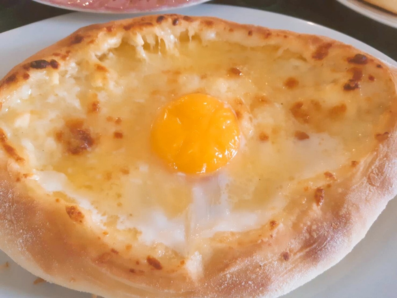 เมนูวันนี้ที่ขอแนะนำ และขอบังคับให้ต้องลอง ถือเป็นเมนูที่สุดยอดมากไม่ควรพลาดด้วยประการทั้งปวงค่ะ สิ่งนี้เรียกว่า Khachapuri ลักษณะเป็นขนมปังแป้งบางกรอบรูปถ้วย มีทั้งทรงกลม สี่เหลี่ยม และเรือ แตกต่างกันไป ตรงกลางมีไข่ เนย ชีส เสิร์ฟร้อนๆ เวลาทานต้องคลุกให้เข้ากัน และทานพร้อมกันทั้งขนมปังและไส้ที่อยู่ด้านใน ใครที่ชอบกลิ่นหอมของเนย ชีส และความเข้ากันของทุกสิ่งแบบนัวๆ ถูกใจเมนูนี้แน่นอนค่ะ ร้านนี้อัธยาศัยดีมาก ยังแนะนำให้ทดลองดื่มเครื่องดื่มยอดฮิตของจอร์เจียอีกด้วย นั่นก็คือ Chacha บรั่นดีจอร์เจียแท้ๆ ส่วนใหญ่ทำจากเปลือกหรือกากองุ่นที่เหลือจากการบ่มไวน์ แต่ก็มีบางพื้นที่ที่ใช้ผลมะเดื่อ ส้ม หรือมัลเบอร์รี่ เข้ามาเป็นส่วนผสมแทน ตัวนี้ขอบอกว่าต้องสายแข็งเท่านั้นเลยค่ะเพราะแอลกอฮอล์สูงมาก อยู่ที่ 40% – 65% เลยทีเดียว ใครไม่ถนัดดื่มบรั่นดีเพียวๆ แบบนี้ ข้ามเมนูนี้ไปก็ไม่เป็นไรค่า แต่ส่วนตัวขอบอกว่าข้ามไม่ได้ ต้องลองค่ะ ความรู้สึกเหมือนตายแล้วเกิดใหม่