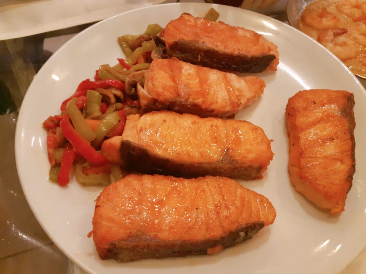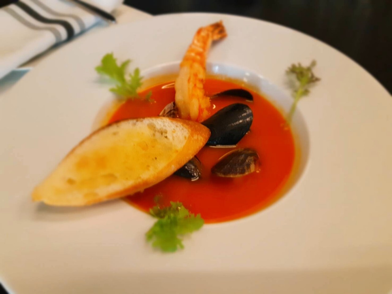 เมนูอาหารค่ำของวันนี้ เน้นสดใหม่ สไตล์เมดิเตอร์เรเนียนซีฟู้ด ถึงไม่ใช่ตัวเบิ้มๆแต่รสชาติต้องยกนิ้วค่ะ ทานคู่กับพิซซ่าท้องถิ่น บางกรอบเค็มๆมันๆอร่อยเพลินกำลังดีค่ะ