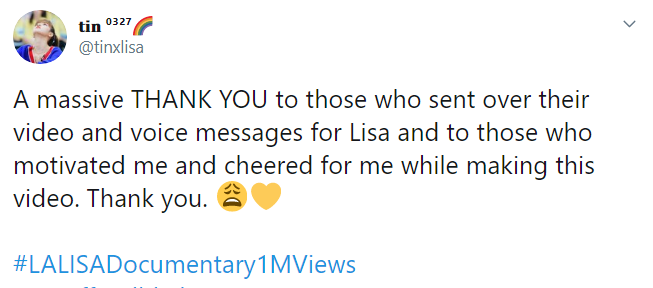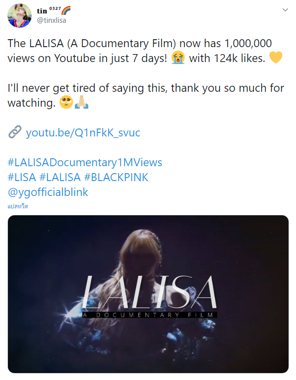 ติดตามได้ที่แท็ก #LALISADocumentary1MViews