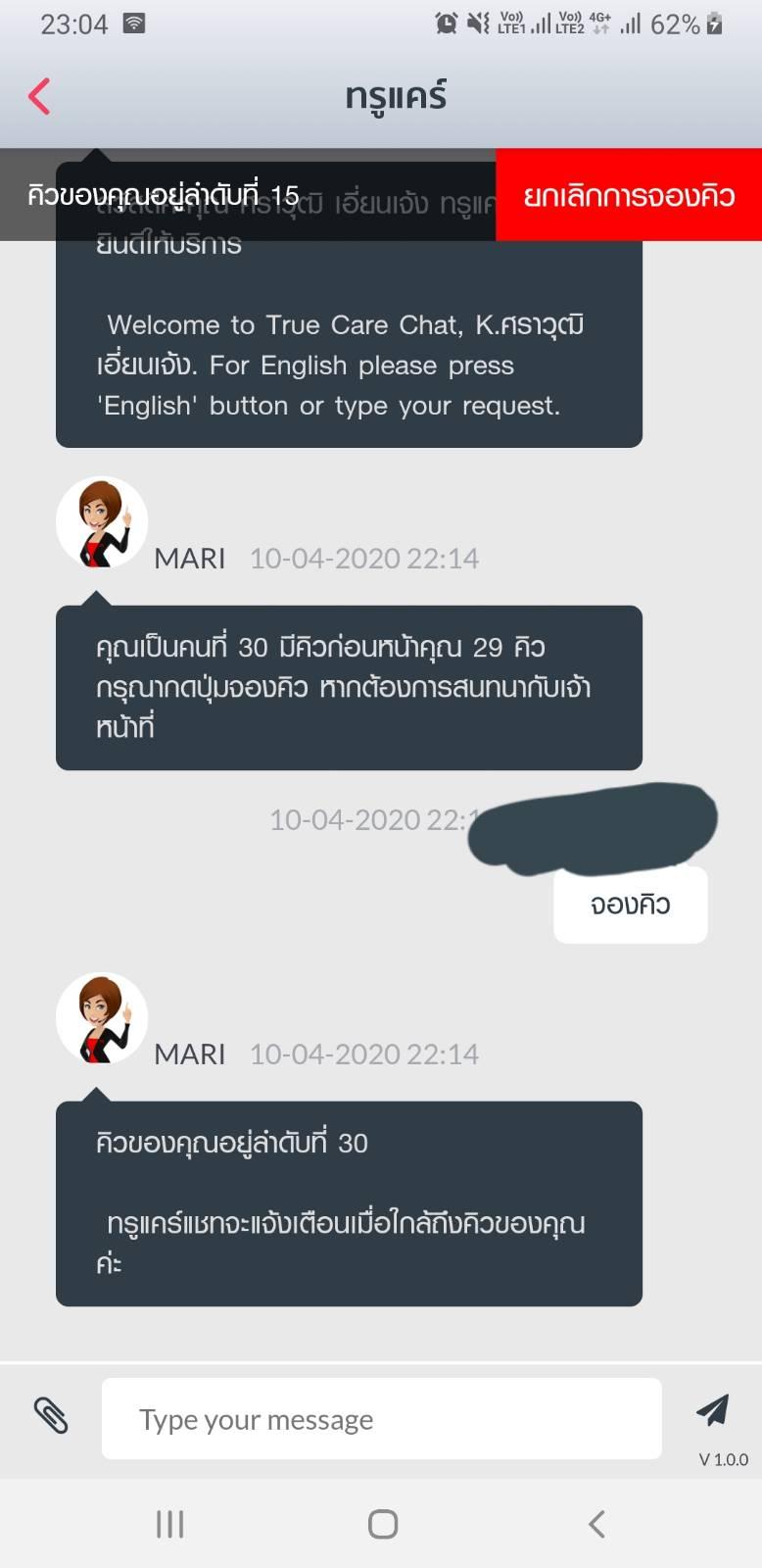 ติดต่อเจ้าหน้าที่รอ 30 คิว ผ่านไป 50 นาที เหลือ รอ 15 คิว นานแบบนี้ตลอดมั้ย ไม่ค่อยได้ใช้บริการทรู