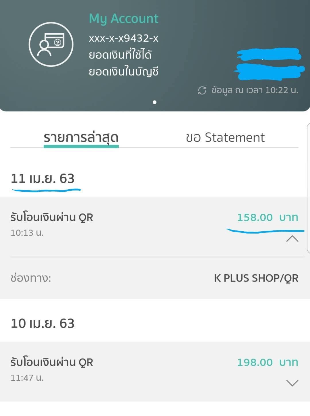 เมื่อเช้าได้ทำการโอนเงิน เพื่อสั่งซื้ออาหาร โดยบัญชีปลายทางเป็นของ kbank
