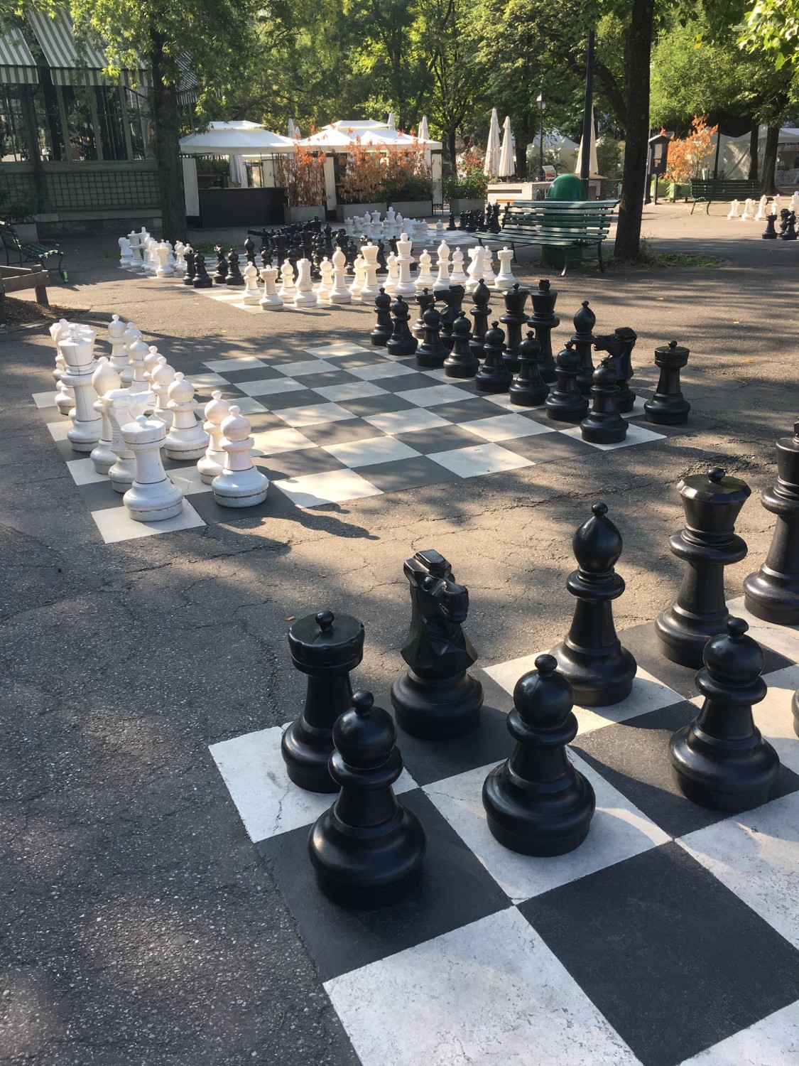 เดินเข้าไปจะเจอกับสวน Parc des bastions ที่มีหมากรุกขนาดใหญ่ไว้ให้ได้เล่นกันอยู่ทางด้านซ้ายมือเป็นเอกลักษณ์อย่างหนึ่งของสวนแห่งนี้ ใกล้ๆกับหมากรุกนี้จะมีห้องน้ำแยกชาย-หญิงสามารถเข้าได้ฟรีค่ะ ไม่ได้แย่แต่ก็ไม่ได้ดี
