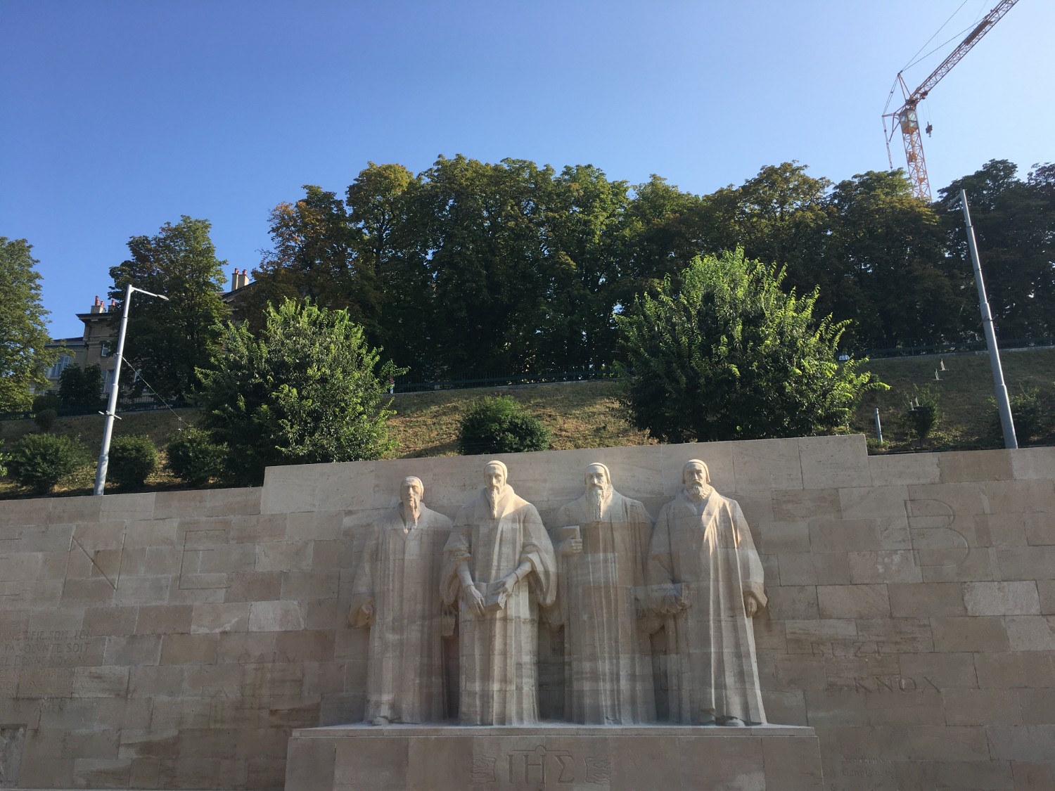 เดินทะลุไปเรื่อยๆจะเจอกับ Reformation Wall อนุสาวรีย์นานาชาติเพื่อการปฏิรูปนิกายโปรเตสแตนต์