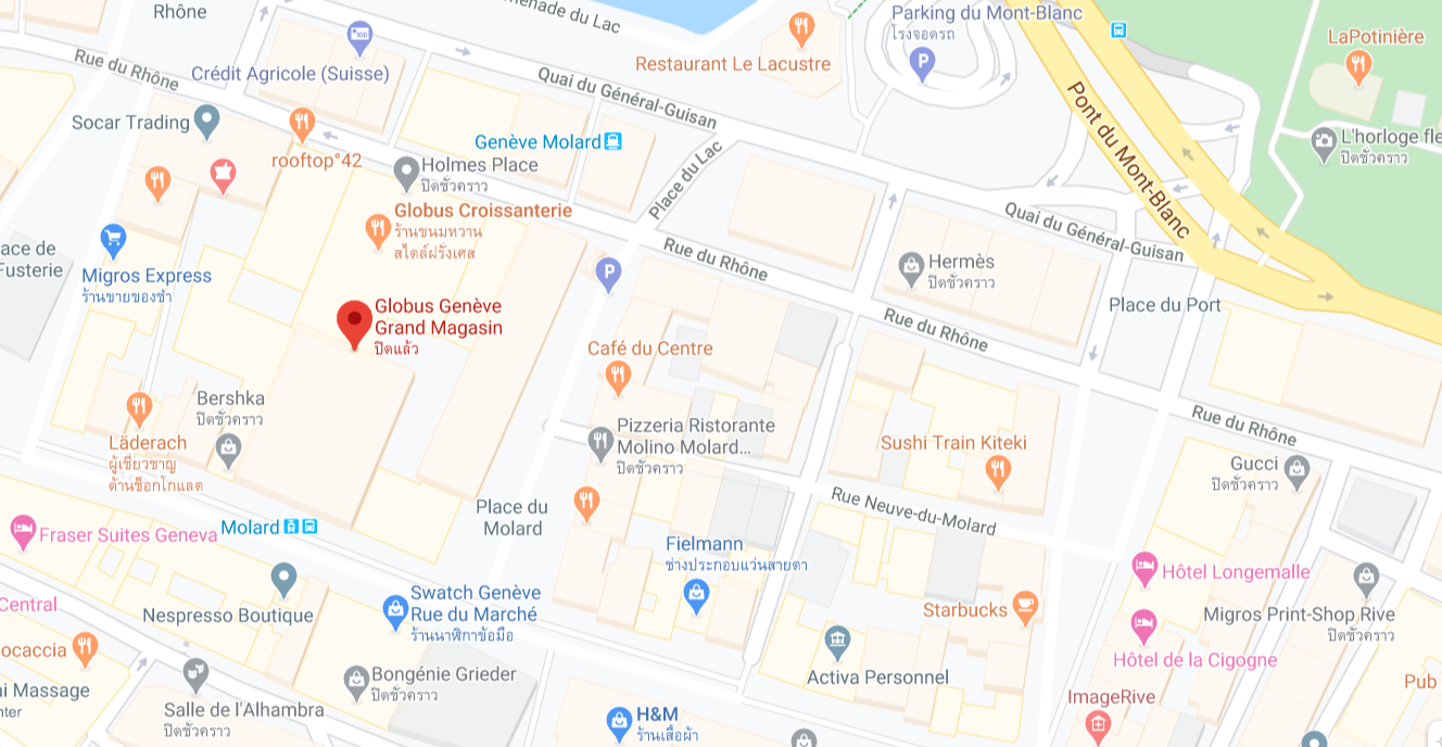 หากเดินทะลุไปเส้นด้านหลังถนน Rue du Rhône จะเป็นเส้นของ Shop brandname เช่น LV, Gucci, Hermès, Fendi, Dior, Chanel