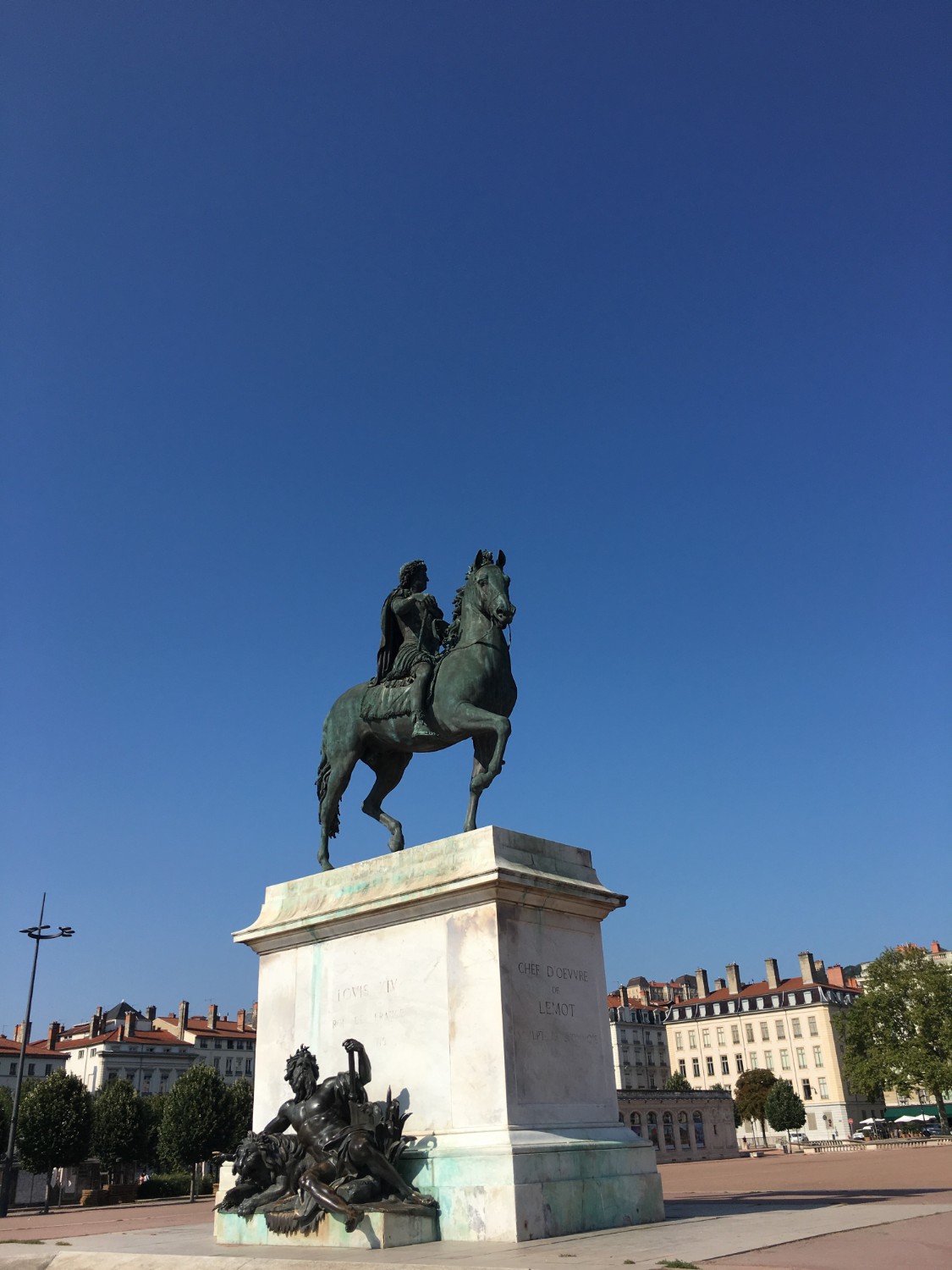 จตุรัส Bellecour ที่ตั้งของอนุสาวรีย์ของพระเจ้าหลุยส์ที่ 14 เดินทางมาโดย metro สถานี Bellecour