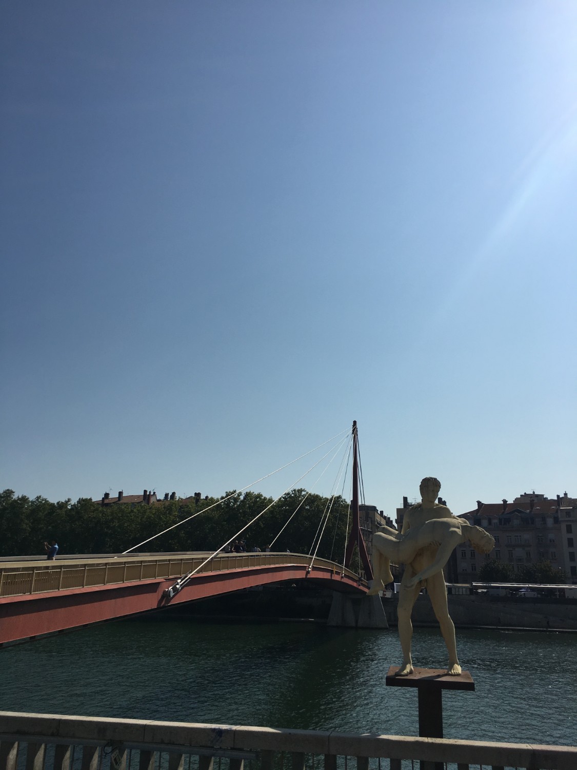 เดินข้ามสะพานผ่านแม่น้ำ Saône