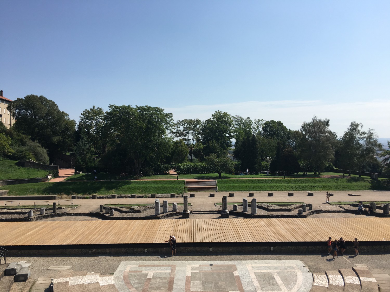 เดินลงมาจาก La Basilique Notre Dame de Fourvière เพื่อที่จะไปยัง Musée Gallo-Romain de Lyon ซึ่งก็คือโรงละครโรมันนั่นเอง ใหญ่มากและร้อนมากเช่นกัน