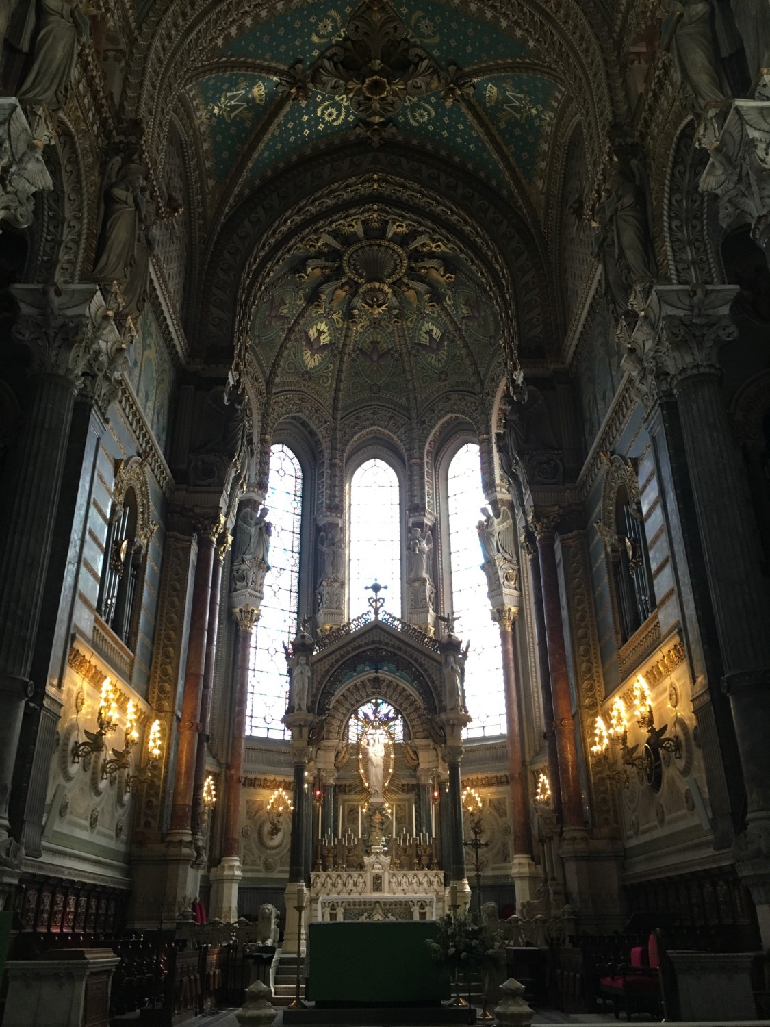 เมื่อขึ้นไปด้านบนก็จะเจอกับ La Basilique Notre Dame de Fourvière เป็นโบสถ์ที่เก่าแก่มากๆอีกแห่งหนึ่งของลียงเลยก็ว่าได้ ที่นี่ก็มีคนเรี่ยไรเหมือนเดิมค่ะ