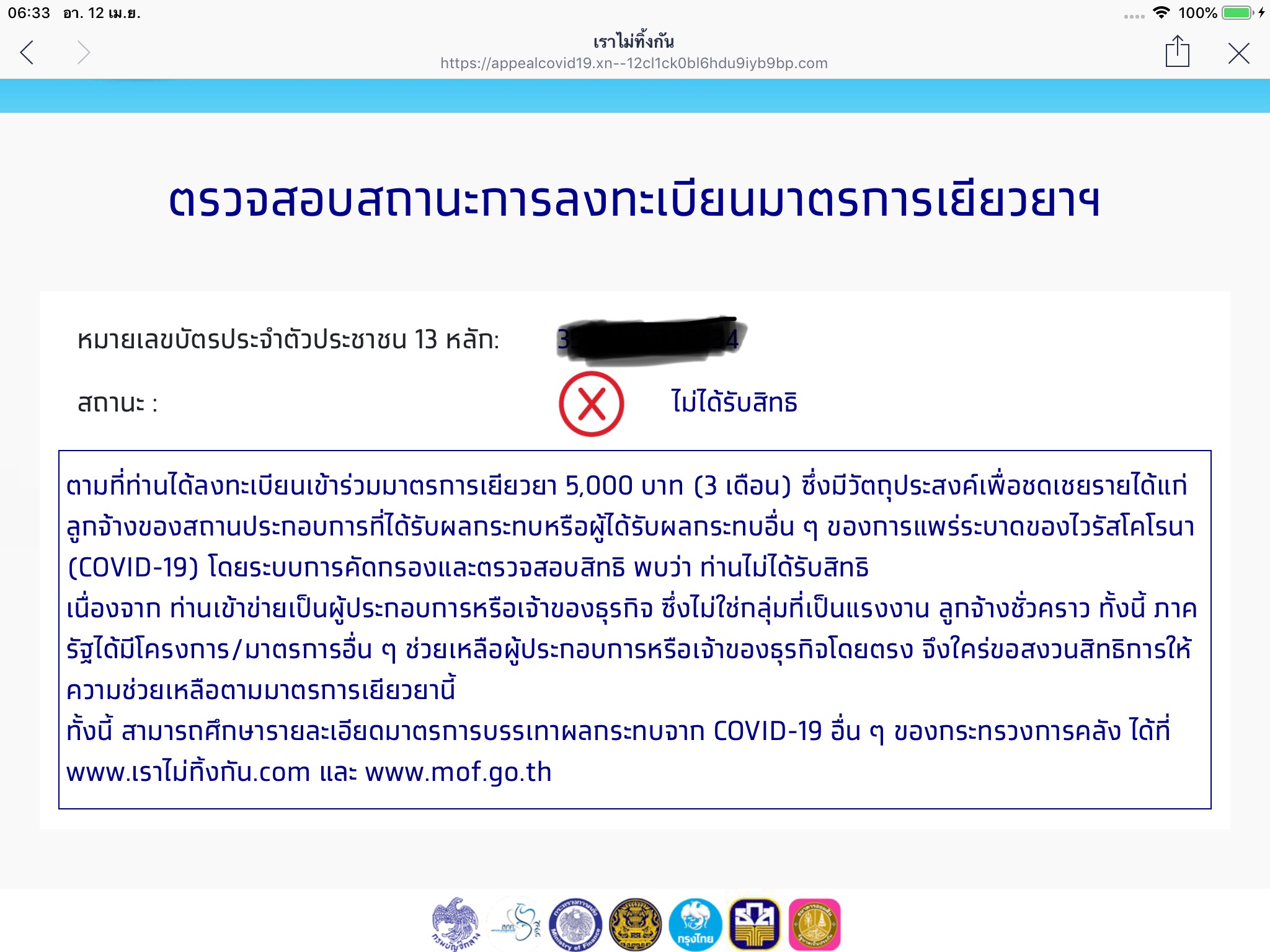 ได้ลงทะเบียนรับเงิน 5,000 บาท. ได้รับข้อมูลแบบนี้(ตามรูปข้างล่างนี้)
