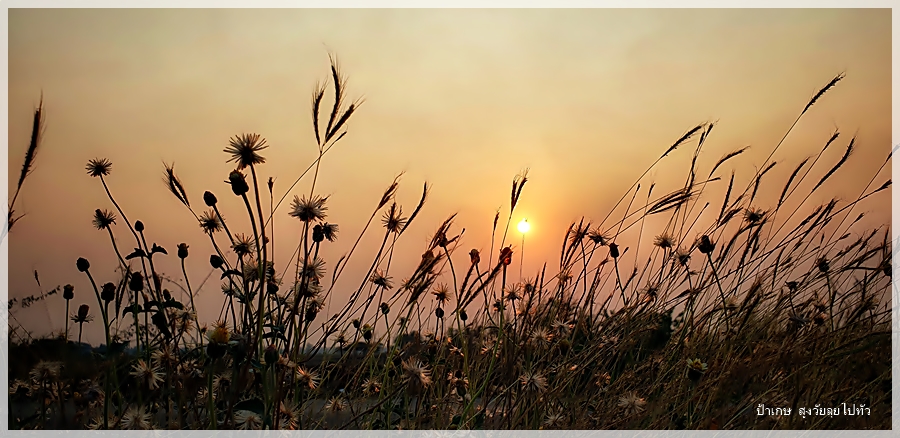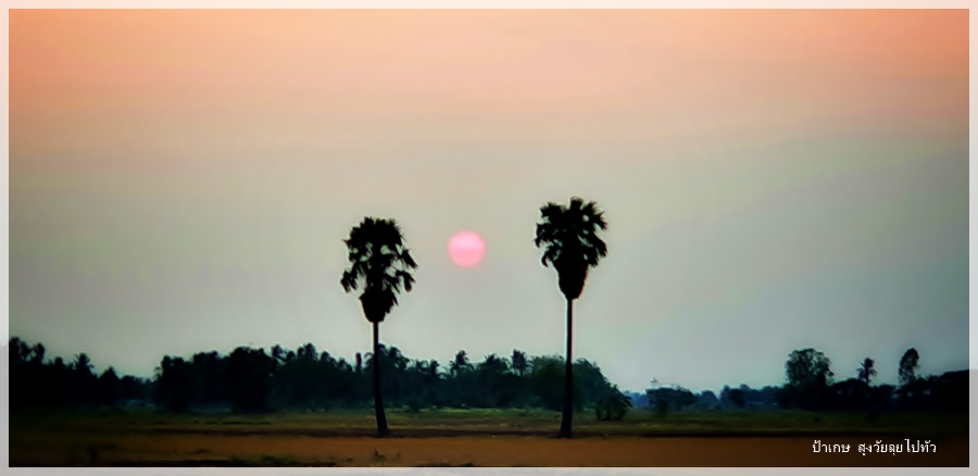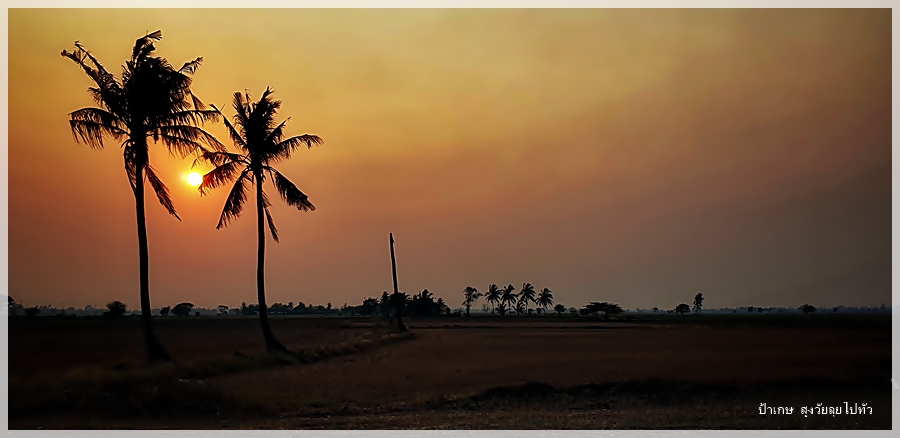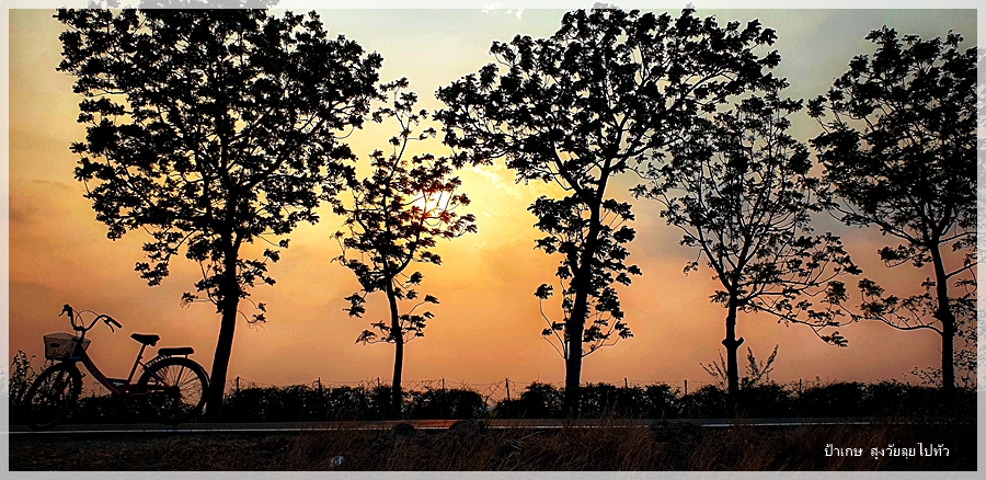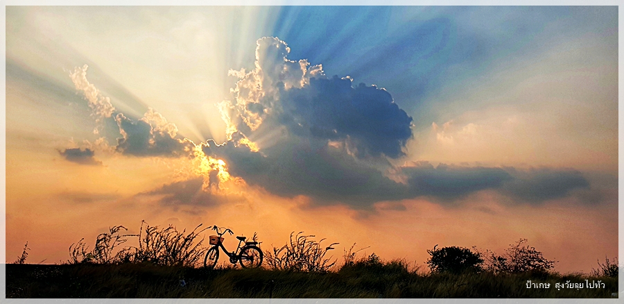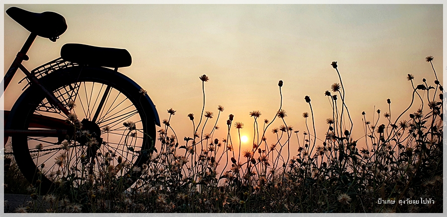 คว้าจักรยานเก่าๆที่มันคงรอให้คนมาถีบมันออกไปใช้งานซักที ออกไปสูดอากาศดีๆบ้างที่กลางทุ่งนาในยามเย็น โอกาสแบบนี้ไม่มีเข้ามาง่ายๆเพราะชีวิตการเดินทาง ไม่เคยเห็นพระอาทิตย์ตกสวยๆที่บ้านของตัวเองเลย