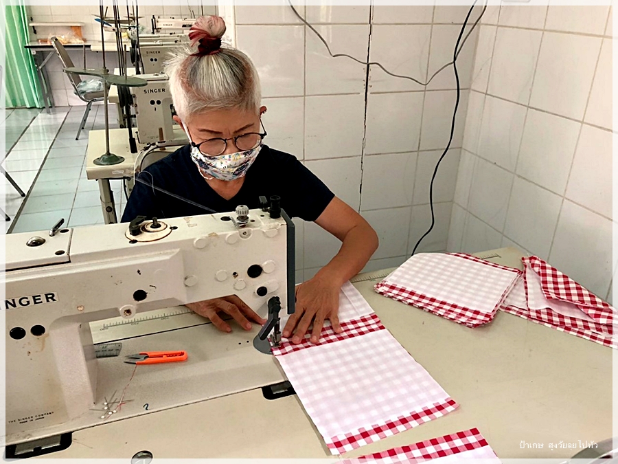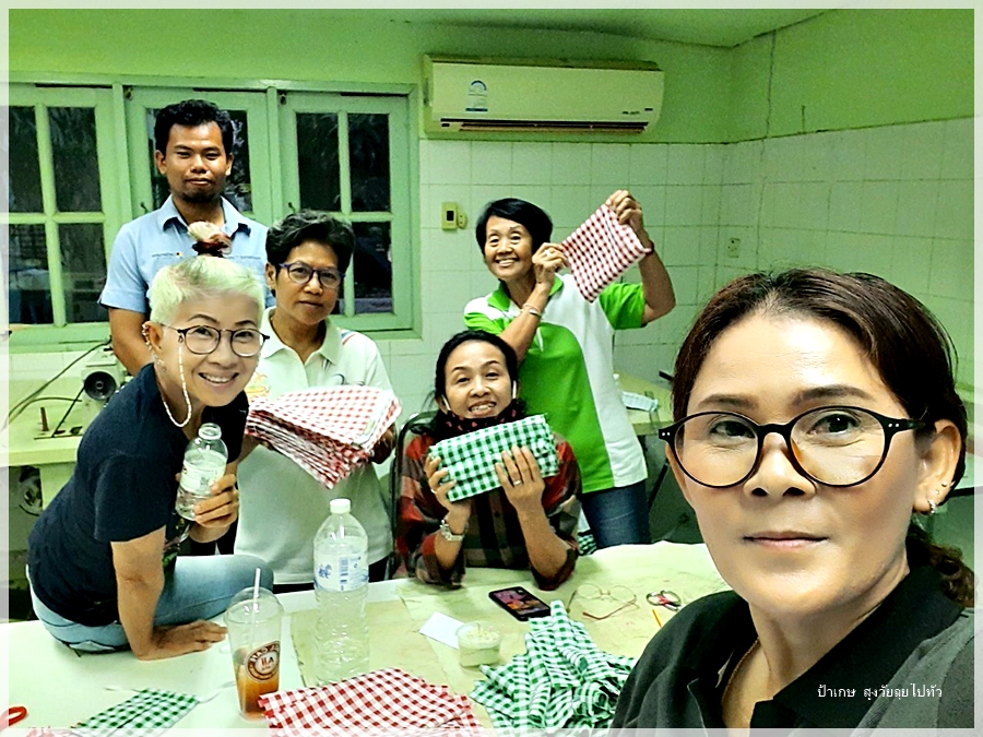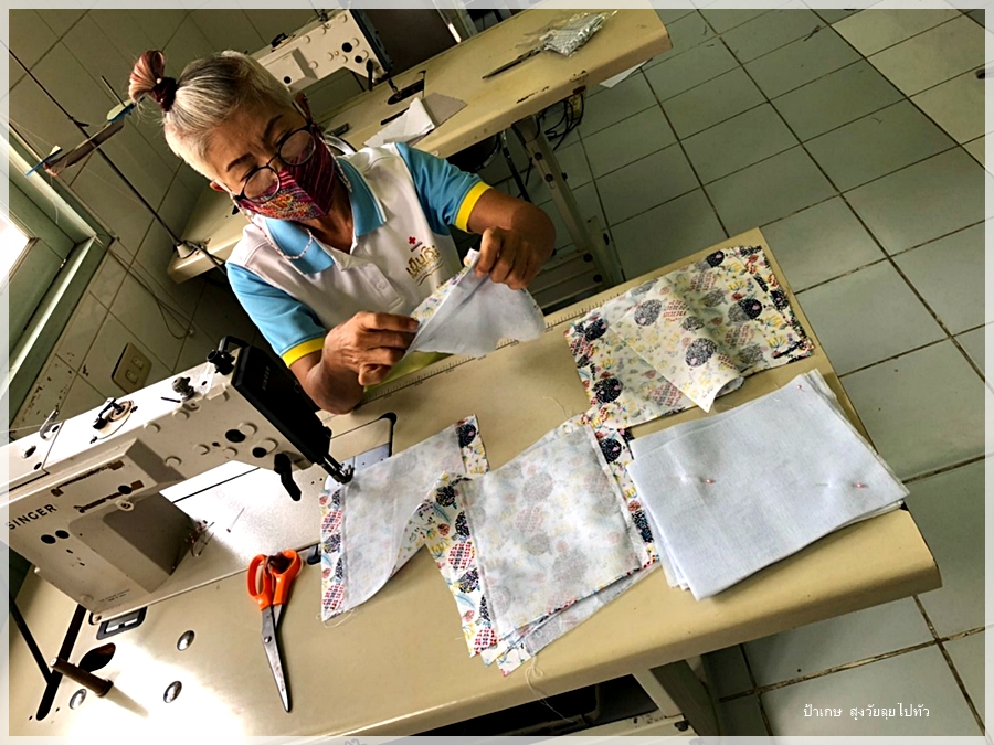 ไปช่วยเค้าเย็บหน้ากากแจก โดยการไปเรียนรู้การเย็บโดยใช้จักรอุตสาหกรรมที่ศูนย์พัฒนาฝืมือแรงงานอ่างทอง