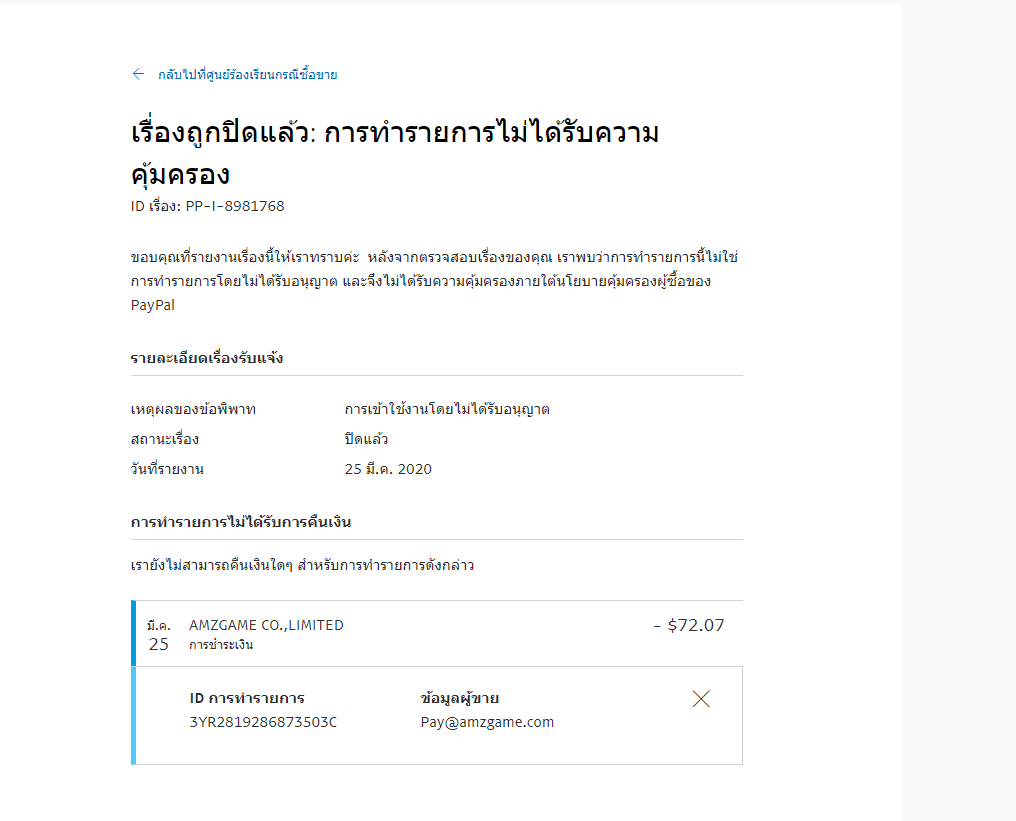 ผมเลยเปลี่ยนรหัส paypal แล้วก็ลองหาวิธีขอเงินคืนแล้วก็ทำตาม แต่ก็โดนปฏิเสธครับ พอจะมีทางไหนที่จะได้เงินคืนมั้ยครับ แล้วจะป้องกันไม่ให้เกิดขึ้นอีกยังไงครับ