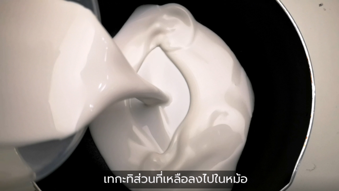 - เทกะทิส่วนที่เหลือลงไปในหม้อ(ยังไม่ต้องตั้งไฟ)
