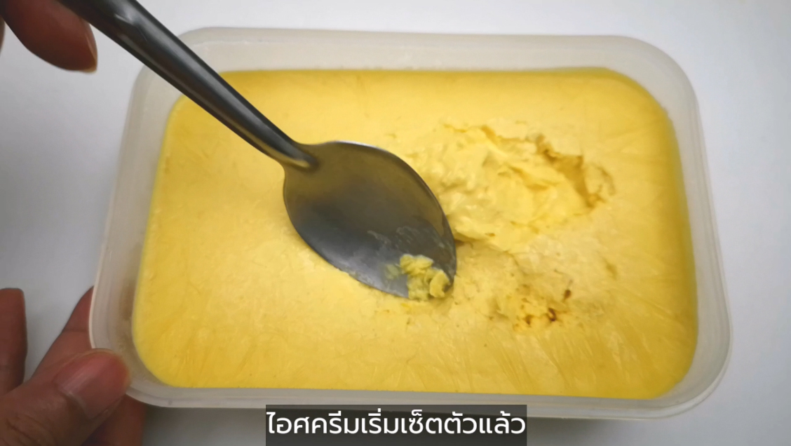- ครบ 6 ชั่วโมงแล้ว ให้เอาออกมา ไอศครีมจะเริ่มเซ็ตตัวแล้ว