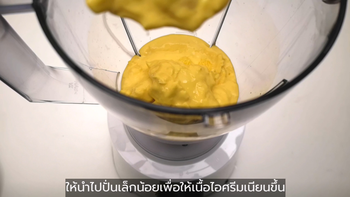 - ให้นำไปปั่นเพื่อให้เนื้อไอศครีมเนียนขึ้น