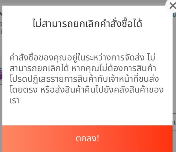 แชทไปถามร้านค้าเขาบอกให้ยกเลิกในระบบ แต่มันก็ยกเลิกไม่ได้แล้วอะคับ