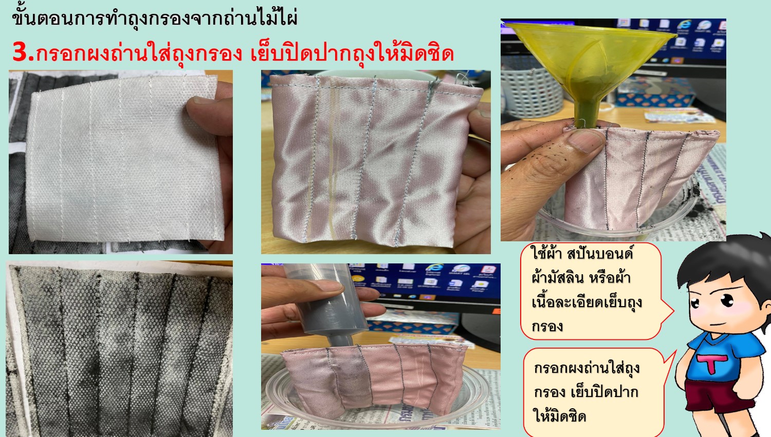 การทำแผ่นกรองหน้ากากจากถ่านไม้ไผ่สู้โควิด19 และ PM2.5