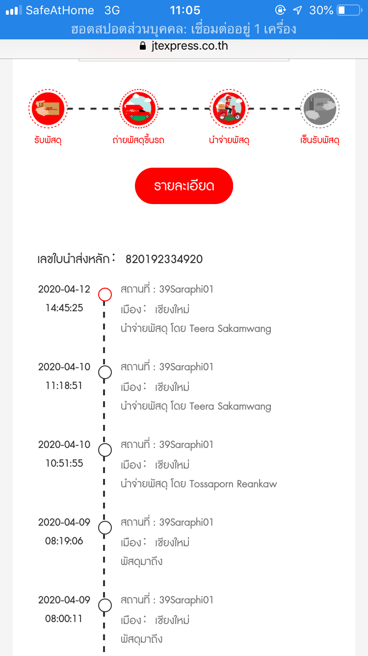 คือเราให้เบอร์แม่ค้าไปผิดแต่ตอนวันอาทิตย์เราได้ไปโทรแก้กับไปรษณีย์แล้วเพราะเราไม่มีรถไปเอาของที่ไปรษณีย์เพราะไดลบ้านมากเลยโทรไปแก้เบอร์เรียบร้อพนักงานก้ถามเบอร์ที่ถูกต้องไปช่วงบ่ายๆเราลองเช้คของดูบอกว่าออกจำหน่ายแต่ไม่มีของมาส่งไม่มีการโทรมาเลยมาวันจันทร์เราก็รอจนทนไม่ได้