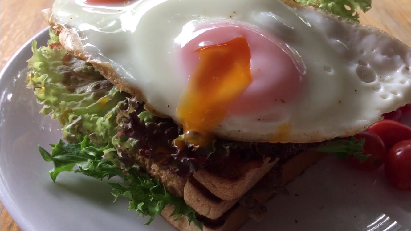 ขนมปัง>ซอส>ผัก>ไข่ดาวเยิ้มๆๆ