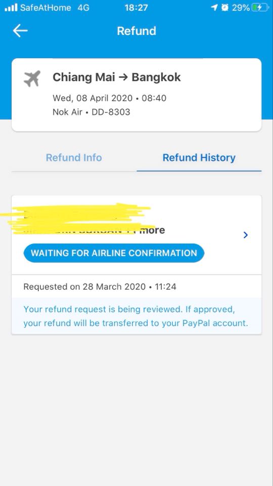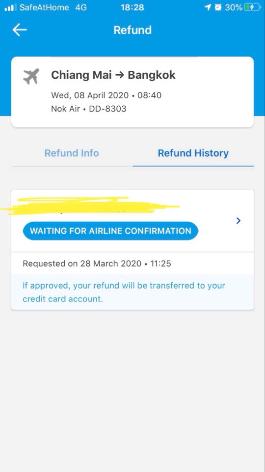 สรุปคชจ. บานนนน กว่าจะได้เงินคืนก็กินเวลาอีก แล้วก็รอนานมากจนป่านนี้ผ่านมา 18 วันแล้วยังไม่ได้ความคืบหน้าใดๆ มีแต่สถานะ waitng for airline confirm ทั้งๆที่ สองรายการนี้เราโทรไปสายการบินเรียบร้อยแล้วด้วยซ้ำ.... ที่สายการบินก็แจ้งไว้ภายใน 7 วันให้ติดต่อ traveloka เพื่อขอคืนเงิน ....และ และ และ...เงินจะคืนเข้าช่องทางที่จ่ายมานะคะ ภายใน 45 วันบลาๆๆ นี่ต้องรอเป็นชาติเลยสินะ...ผมเลยคิดว่าแบบนี้เราจองตรงๆ ผ่านสายการบินเลยไม่ดีกว่าหรอ โปรโมชั่นก็ได้เต็มๆ ทำไมต้องจองผ่านแอพพวกนี้อีกเพิ่มขั้นตอนยุ่งยาก อาจจะใช้แอพพวกนี้ช่วยคัดกรองราคาของแต่ละสายการบิน แต่พอจะจองหนีไปจองตรงๆเลยจ้า ราคาต่างกันแค่หลักหน่วย...