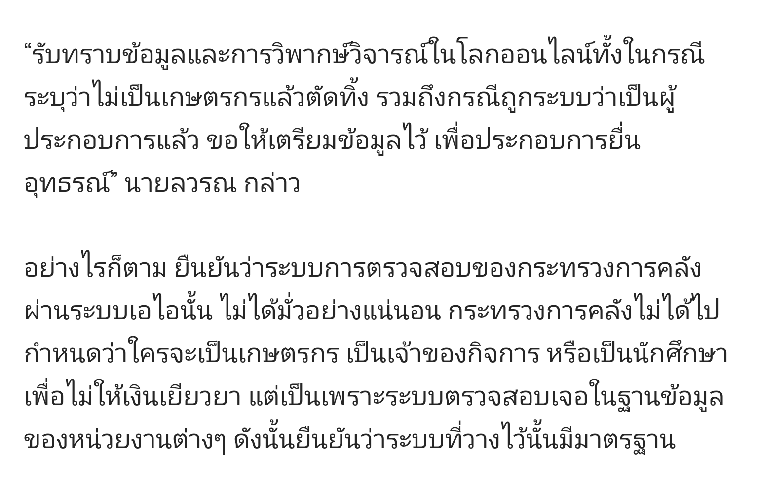 นอกจากนี้ ยังมีกรณีพ่อแม่เป็นเกษตรกร ไปขึ้นทะเบียนเกษตรกรและใส่ชื่อลูกไว้ด้วยในฐานข้อมูลของกระทรวงเกษตร กรณีนี้ก็จะไม่ได้รับสิทธิ์ ทั้งที่จริงๆ แล้วเขาไม่เคยเป็นเกษตรกรเลยแต่ขับแท็กซี่อยู่ ประเด็นปัญหาเหล่านี้ก็จะให้อุทธรณ์ หากพบว่ามีใบอนุญาตประกอบอาชีพจริงในปัจจุบันก็จะได้รับสิทธิ์