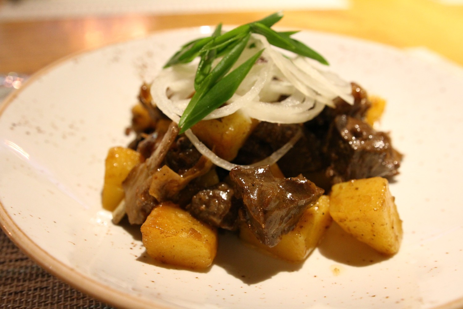 ชื่ออาหาร : Куырдак с ребрами и внутренностями ягненка ราคา 1950 KZT (150บาท)