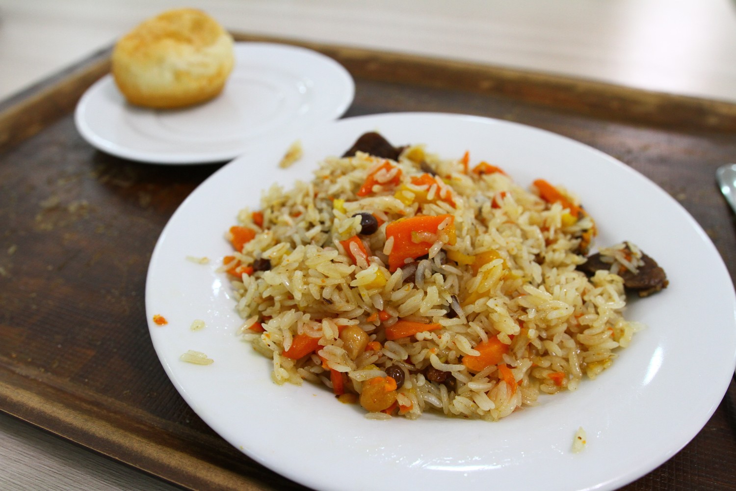 ชื่ออาหาร : Plov (เป็นข้าวผัดเนื้อวัว ใส่ถั่วลูกไก่ แครอท ลูกเกด)