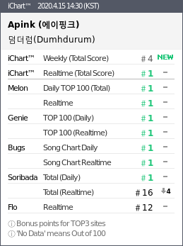 [K-POP] รายงานชาร์ตเพลง 4 ชาร์ต (14.04.2020) | Apink - Dumhdurum [4ชาร์ต]