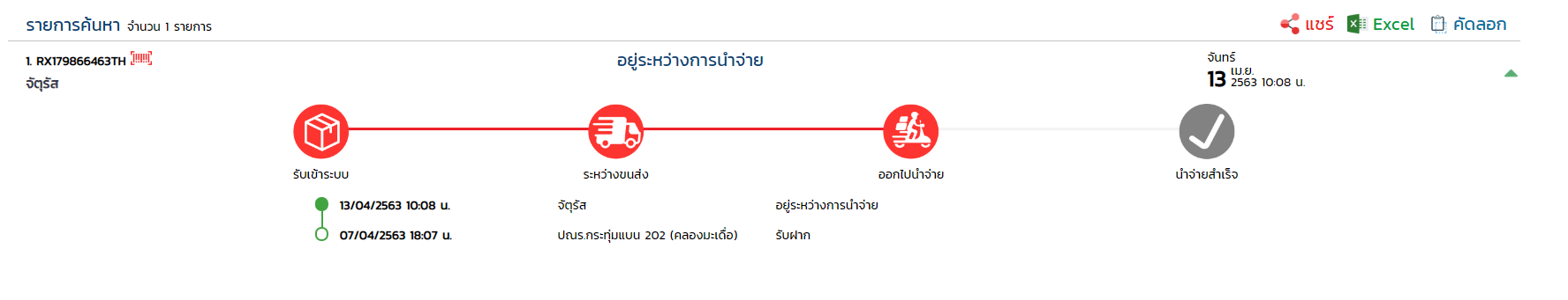 ส่งของตั้งแต่วันที่7/4/63 จนวันนี้ของอยู่ที่ไหนคะ