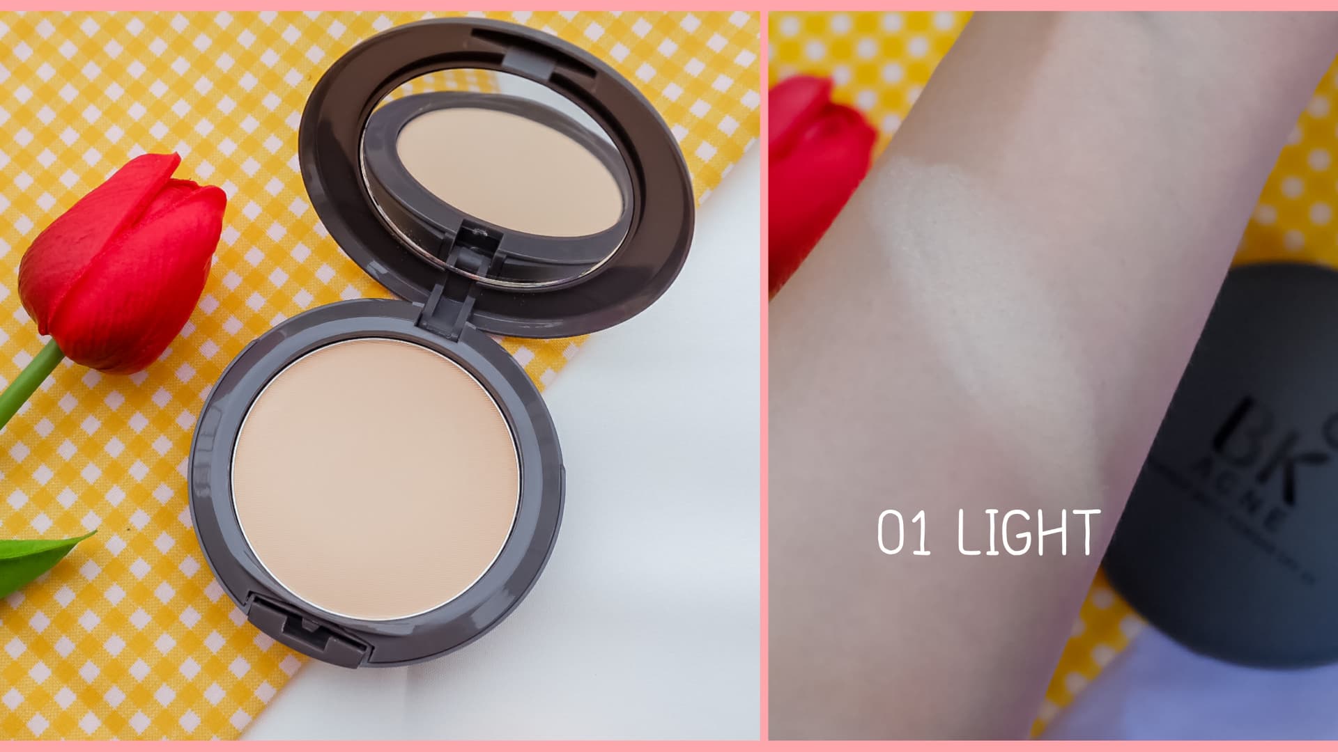 แป้งพัฟBKตัวนี้มีความเป็นเนื้อแมตต์ และมีให้เลือกถึง 3 เฉดสีและสีที่พลอยใช้คือ 01 LIGHT