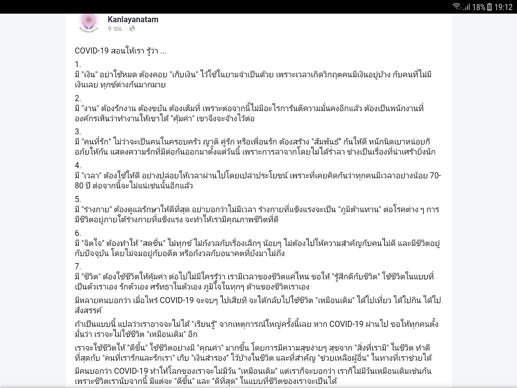 ●● COVID - 19 สอนให้เรารู้ว่า... ●●