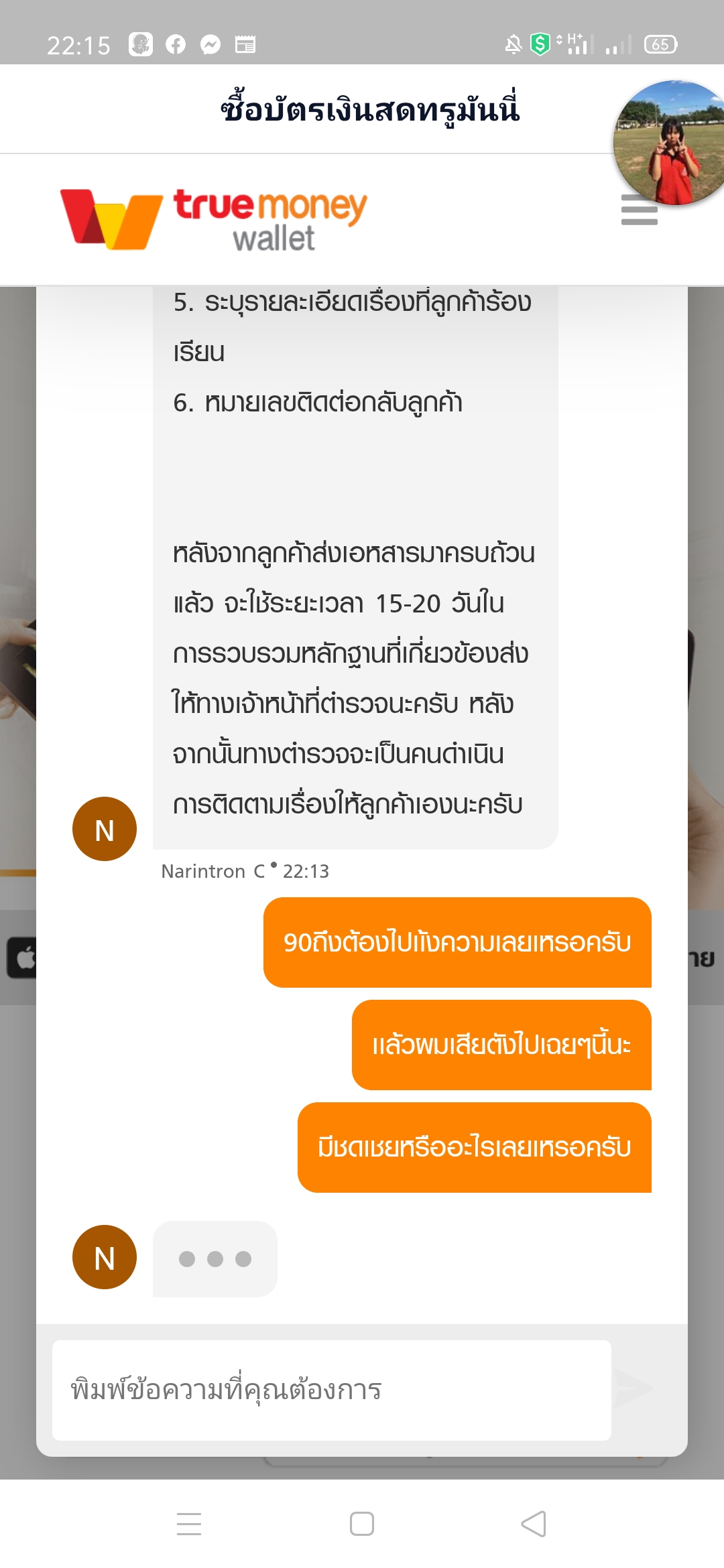 คือผมมีเงิน100ว่าจะเติมเกมเลยเข้าไปเติมทรูมันนี่ในวอเล็ท90บาท พอผมกดซื้อตามปกติได้สลิปมา พอเอาโค้ดไปใส่กลับเขียนว่าบัตรถูกใช้ไปเเล้ว ผมเลยลองไปเเจ้งในวอเล็ทดู ผมคุยเรื่องที่เกิดขึ้นตามปกติ ผมก็เอาสลิปให้เขาดู เขาบอกว่าเขาบอกว่าบัตรถูกใช้ไปตั้งเเต่เมื่อวานวัน14/4/2020
