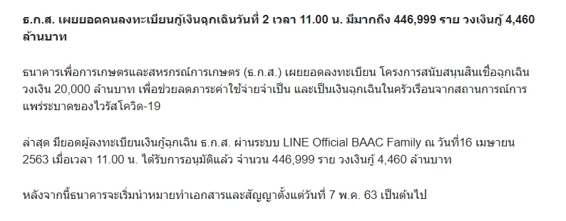 เห็นเงียบเงียบ ยอดลงทะเบียนกู้เงินฉุกเฉิน ธ.ก.ส. เพียบนะครับบบบบ