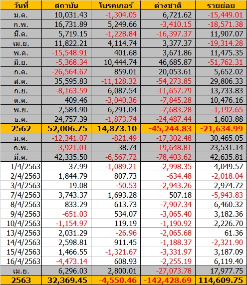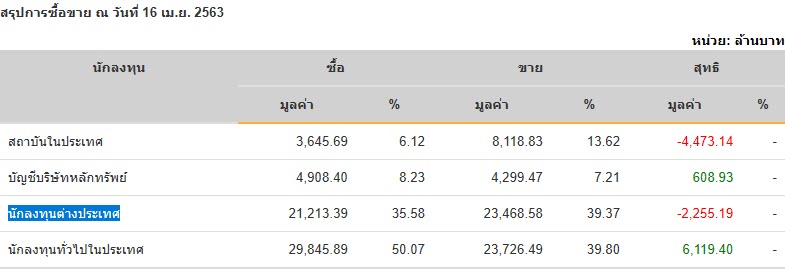 Sinthorn Summary 16/4/2563 : ต่างชาติขายสุทธิ -2,255.19 ลบ.