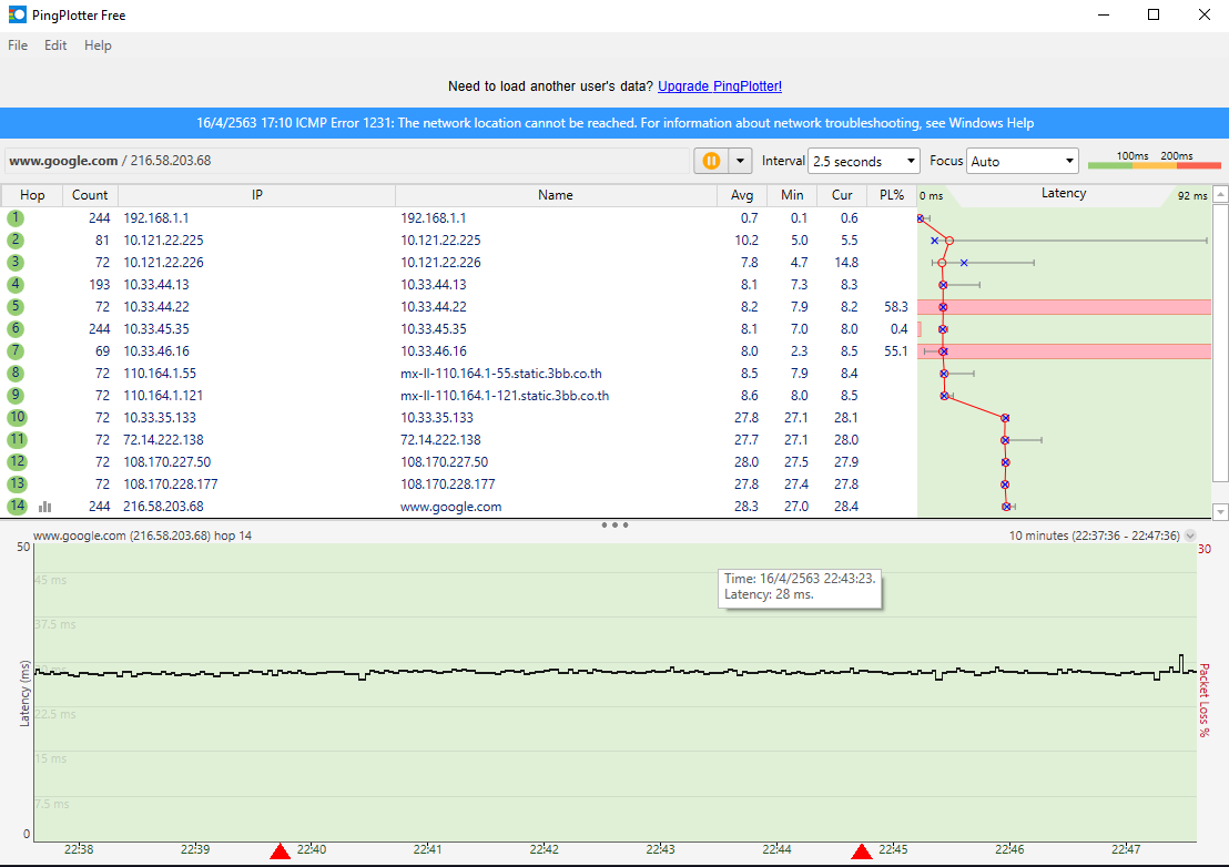 + + + โปรแกรม pingplotter เทสต์แล้วขึ้นแถบสีแดง มีผลต่อการใช้งานมากไหมครับ + + +