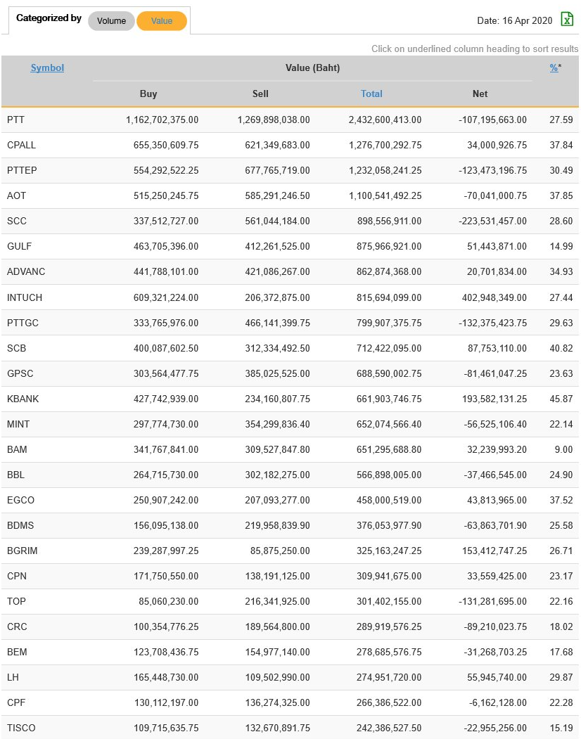 นักลงทุนต่างชาติ NVDR ซื้อ-ขาย มูลค่าสูงสุด 25 อันดับ 16/04/63