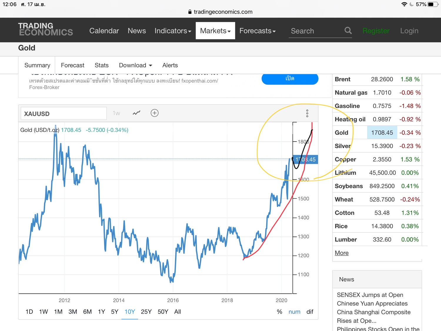 ทองพักตัวชั่วคราว ก่อนมุ่งเนิน 1800